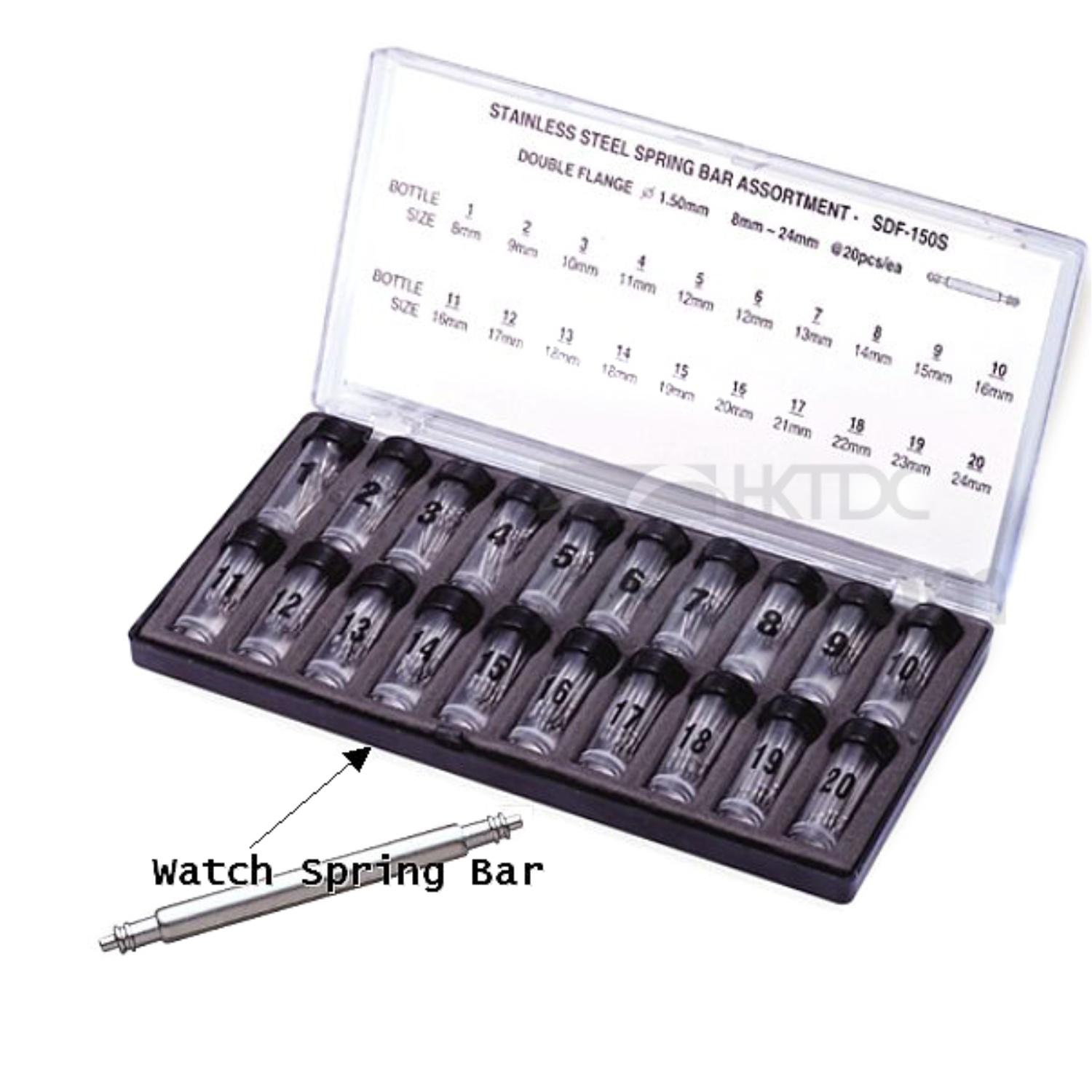 Total 20 bottles in box set, total quantity of watch spring bars are 400 pcs