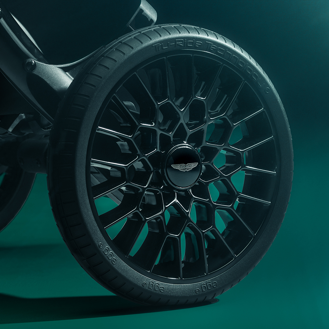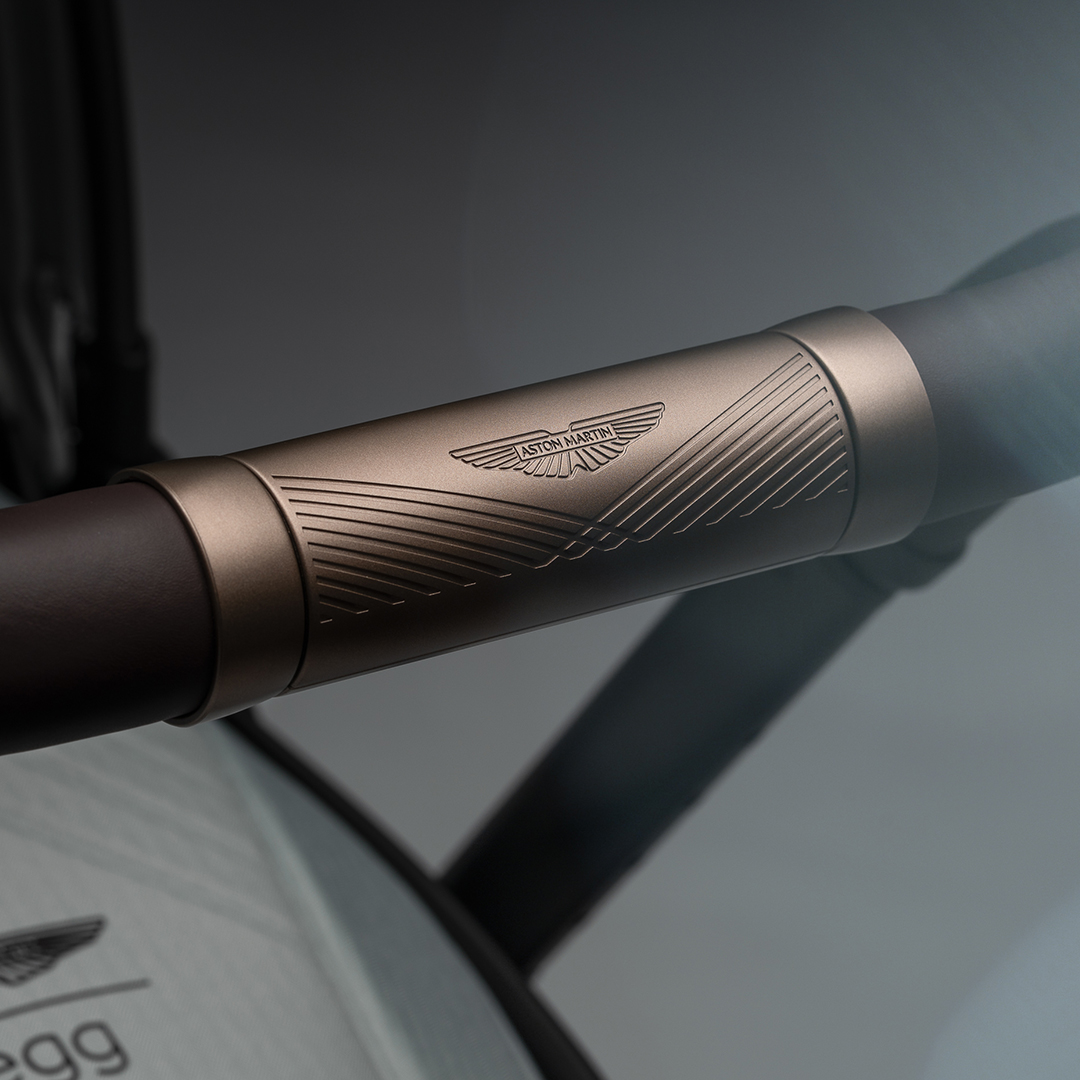 Born from a synergy between two icons of British craftsmanship, the Aston Martin egg3 combines precision engineering with timeless design. Available in three distinct colourways, the collection presents automotive-inspired details such as honeycomb wheels, DBX707-style trims, and luxurious fabrics, Refined finishes - including the knurled central hub and a distinctive buckle - reflect Aston Martin's passion for precision, performance and luxury.