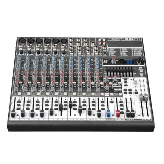 Demonstrated is a traditional audio mixer with wireless receiver, bestowing you the mobility of microphones. It includes an USB/Audio interface, letting you connect to the computer and produce professional quality sound recording.