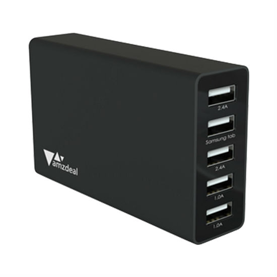 Package contents: Amzdeal® 5-port USB wall charger, 5ft / 150cm detachable power cord, user manual.