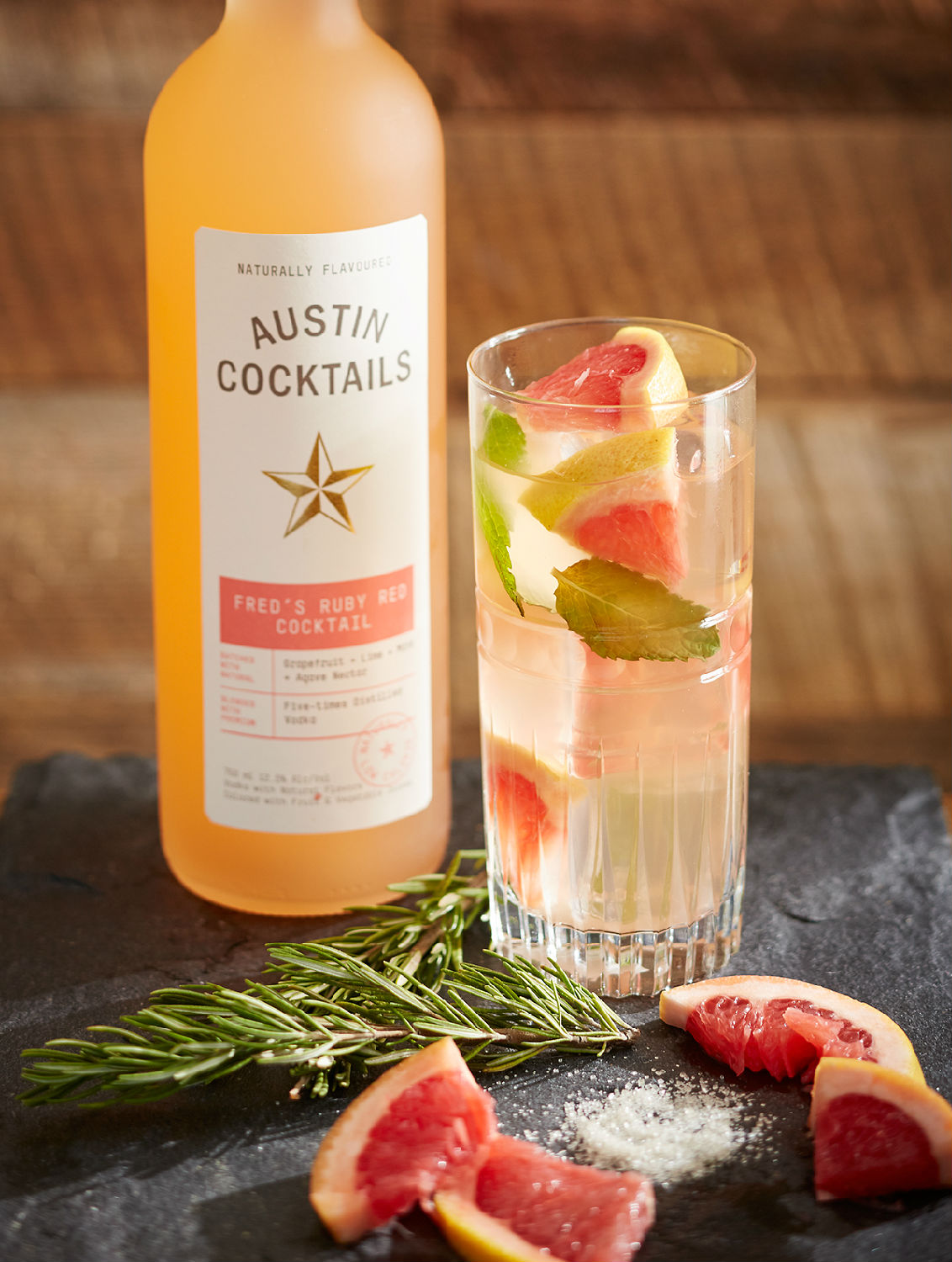 Tasting Note: Fred's Ruby Red Cocktail is an ode to our Grandpa Fred- a down-to-earth farmer with a contagious, effervescent charm. We took Granpa Fred's appreciation for the bounties of the land and set out to craft a cocktail that showcases the finest and brightest ingredients. The mixture of luscious, aromatic, ruby red grapefruit, juicy lime, and crisp mint creates a bold cocktail tamed only by a light touch of organic agave.