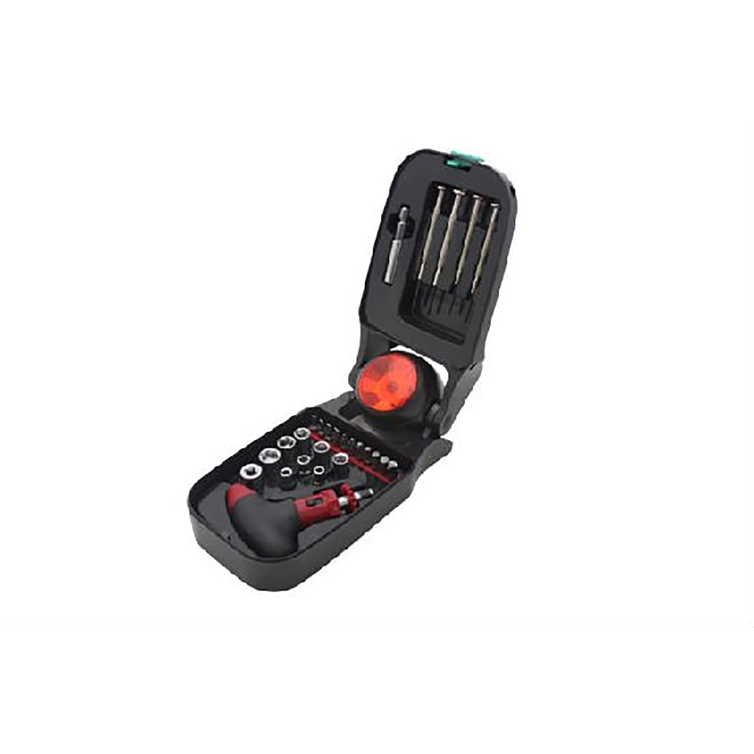 27 pieces tool kit with dual LED flashlight includes the following features: