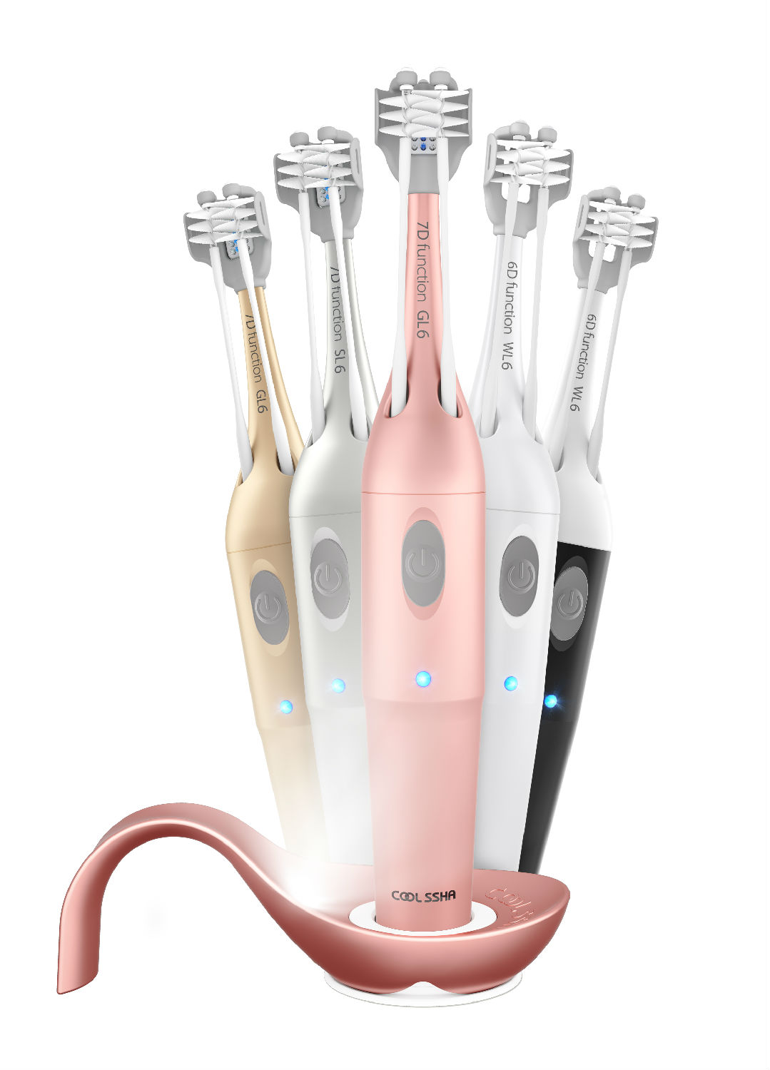 It is an international patented technology which is two brushes remove the plaque at back and front, left and right of the teeth, and between cervical parts (gaps between teeth and gum).