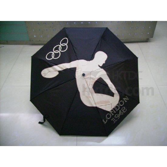 This umbrella comes in a compact 3-fold design and can open and close automatically. It has a metal shaft with fiber glass ribs and has a straight plastic handle for easy holding. Printed with logos on the panels, this foldable umbrella is excellent for promotion and souvenir use.