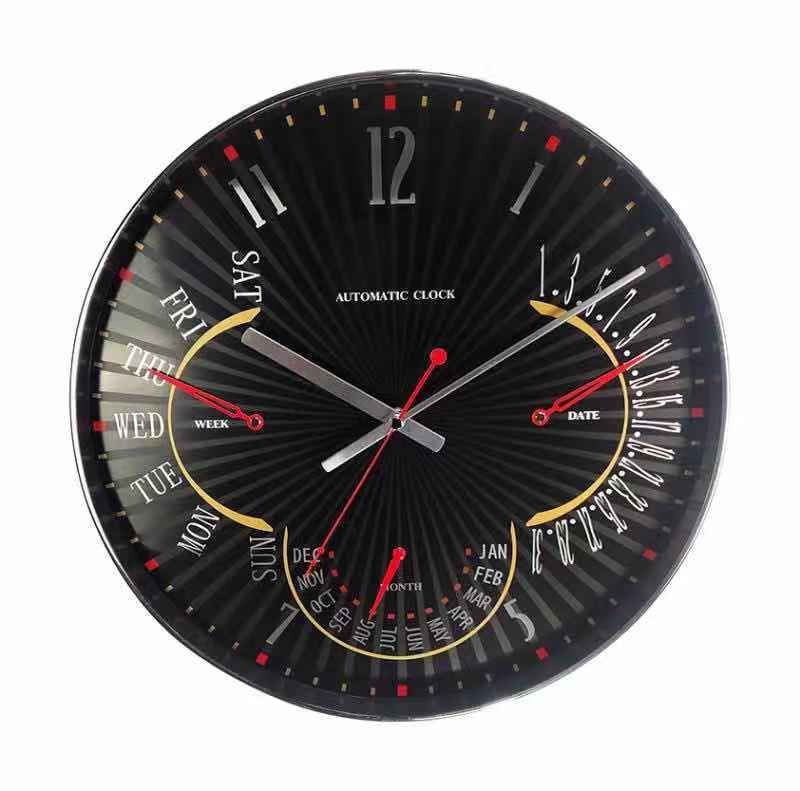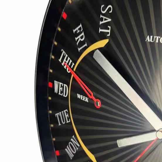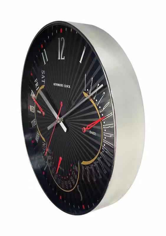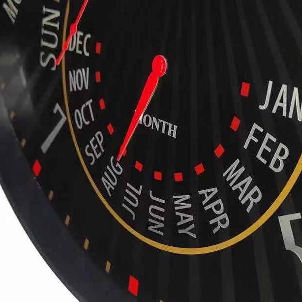 The industrial punch 15-Inch clock design which displays the time, day and date makes this clock stand stand out from the rest, a fusion of contemporary style and functionality. The outer ring and dial materials are made out of a sturdy metal constructed frame which gently wraps itself around the polished glass inlay enabling longer durability and functionality of the wall clock in your home. With the calendar feature that shows day, date, month all in one, this wall clock can surely amaze you as the best choice for office and home decoration.