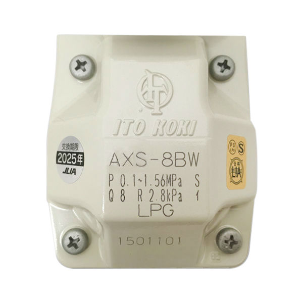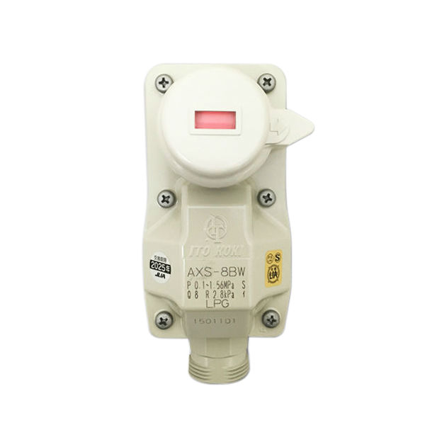 This regulator has both the automatic change-over section of the primary regulator and the secondary regulator for two-stage decompression in a single unit. It features two-stage decompression in which the gas cylinder pressure is adjusted to the appropriate combustion pressure (2.55–3.3kPa) by first reducing pressure at the automatic change-over section and then reducing pressure further at the secondary regulator.