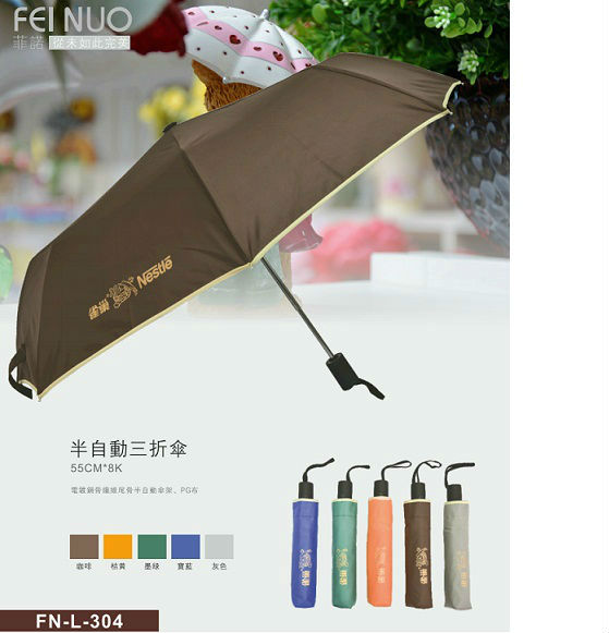 This compact umbrella comes in a three-fold structure and flaunts a space-saving design. It offer simple buttoned operation and can easily fit in briefcases, handbags, backpacks, etc. The umbrella has a water repelling canopy and offers good protection against rain.