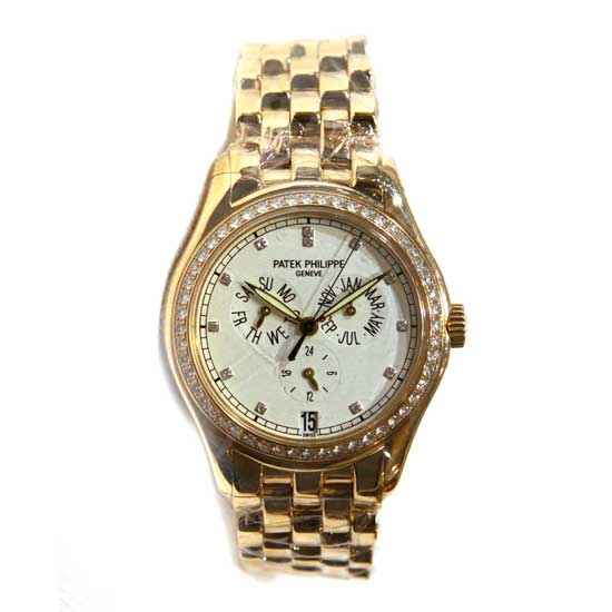 This presented Patek Philippe watch is fitted with the finest 5037 automatic movement. The 18K yellow gold and 52 diamonds setting showcases an opulent accent. This handsome automatic watch adds a classy finish to your business wear.