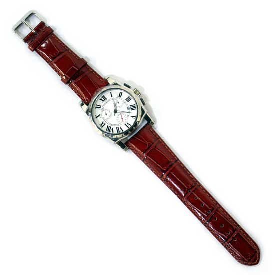 This noble wristwatch highlights a white dial with Roman numerals and a bold red strap made of leather. It is equipped with an automatic movement for reliable time keeping. This trendy wristwatch is suitable for both men and women.