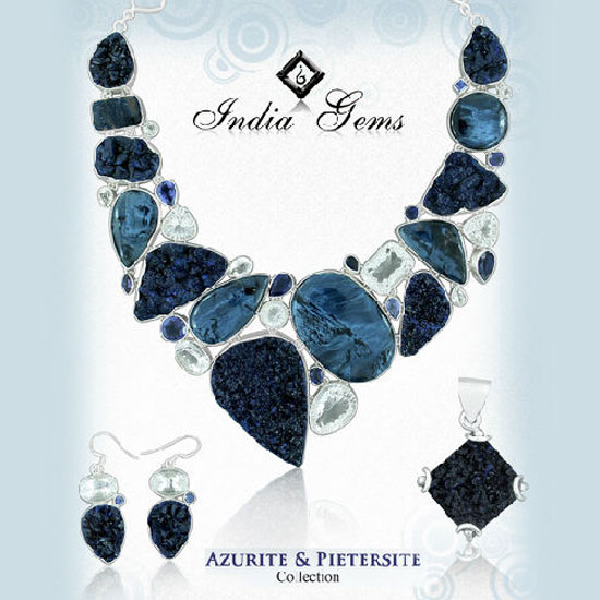 This is a 925 sterling silver azurite and pietersite jewelry collection with a stylish and fashionable design. This jewelry collection comes with a necklace, a pendant and a pair of earrings. This jewelry collection is finely made with great craftsmanship and delicate details.