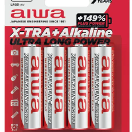 1.5V AAA alkaline battery that provides great durability even without continuous use and a good response to low temperatures.