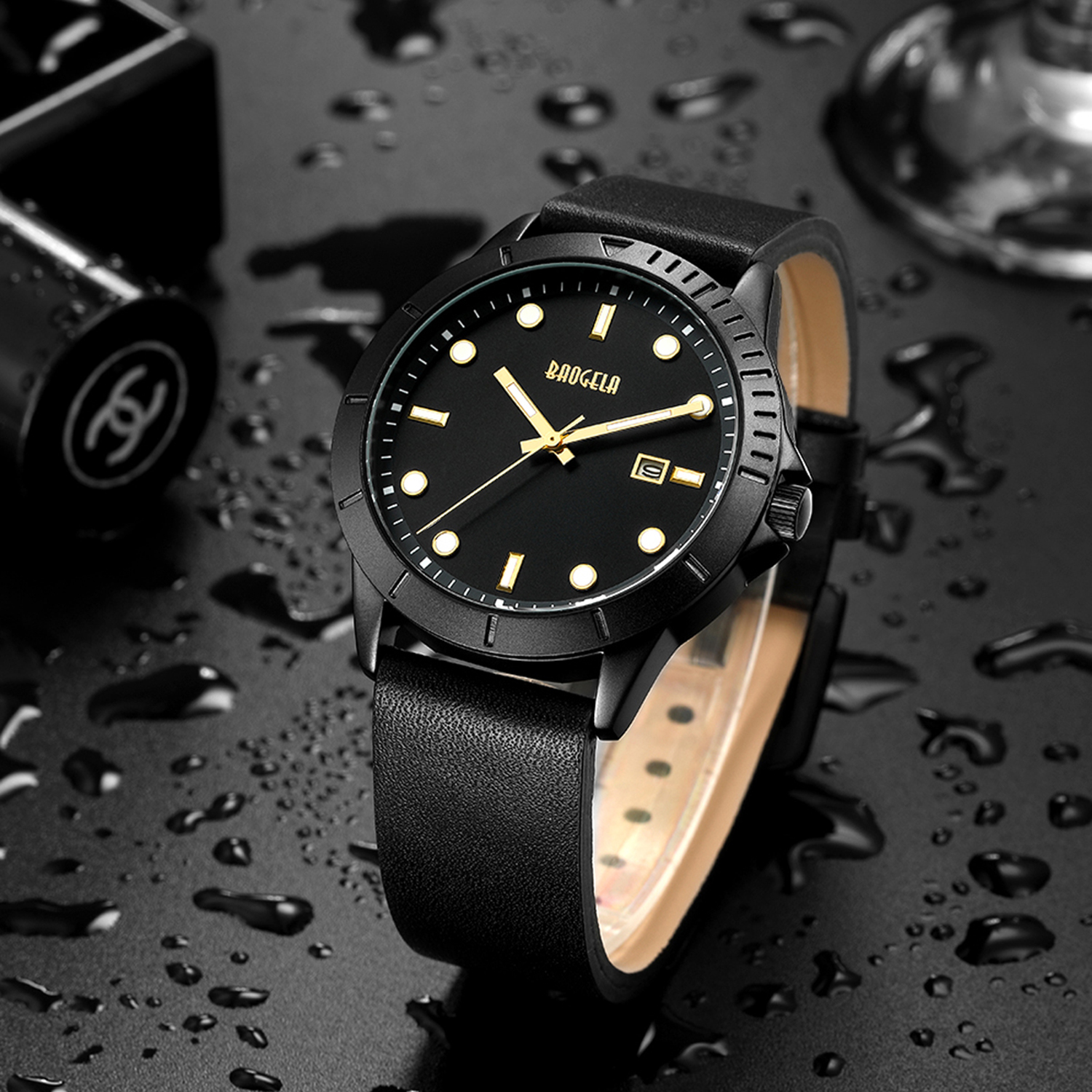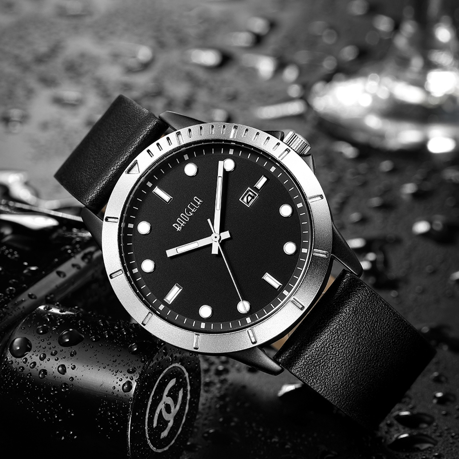 BAOGELA Men Fashion Chronograph Quartz Watch Mens Leather Waterproof Sport Watches