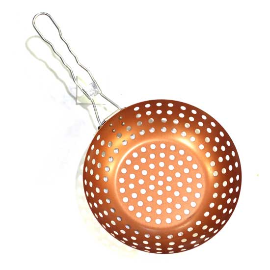 This bronze-toned BBQ grill pan offers a fast and easy way of grilling and toasting vegetables and meat. The grill pan is applied with non-stick coating for easy cleaning. The long, flexible handle allows safe maneuverability and control of the pan.