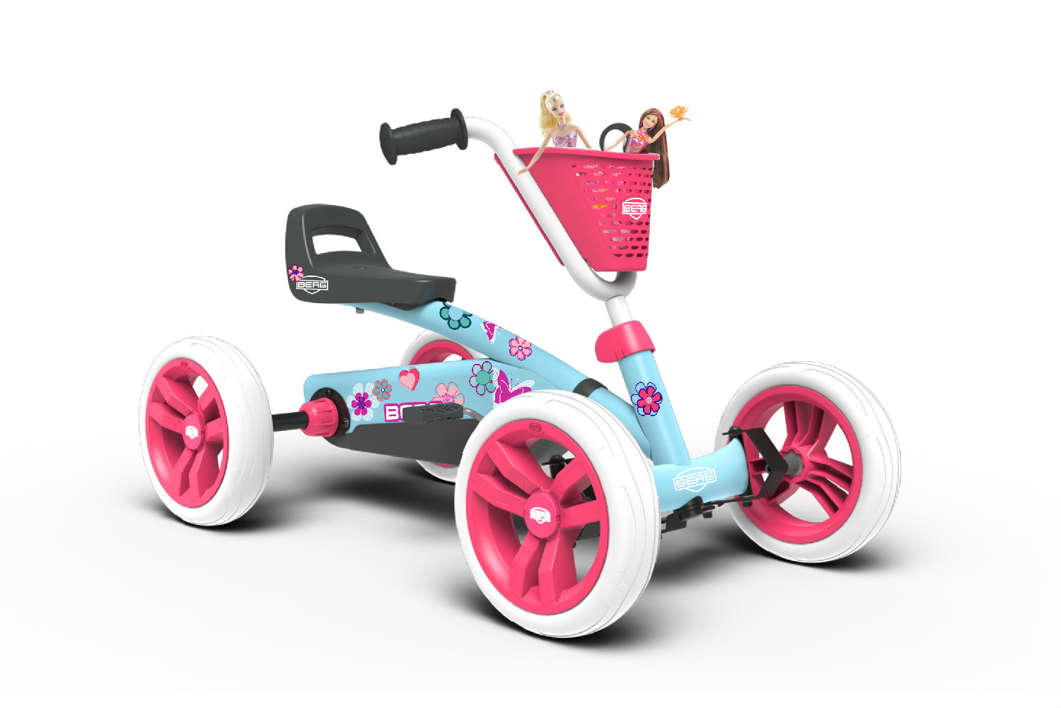 A wonderful new Girly pedal gokart. What is nicer than playfully learning to pedal forwards and backwards while making a splash among your friends. The four wheels will keep you super stable and thanks to the EVA tyres you will never end up at the side of the road with a flat tyre! The direct drive system helps you pedal with little effort, even the youngest will master this very quickly and pedal easily! Pedaling backwards is also possible, which makes the go-kart really maneuverable. The seat and steering wheel are easy to adjust, guaranteeing years of playing fun.