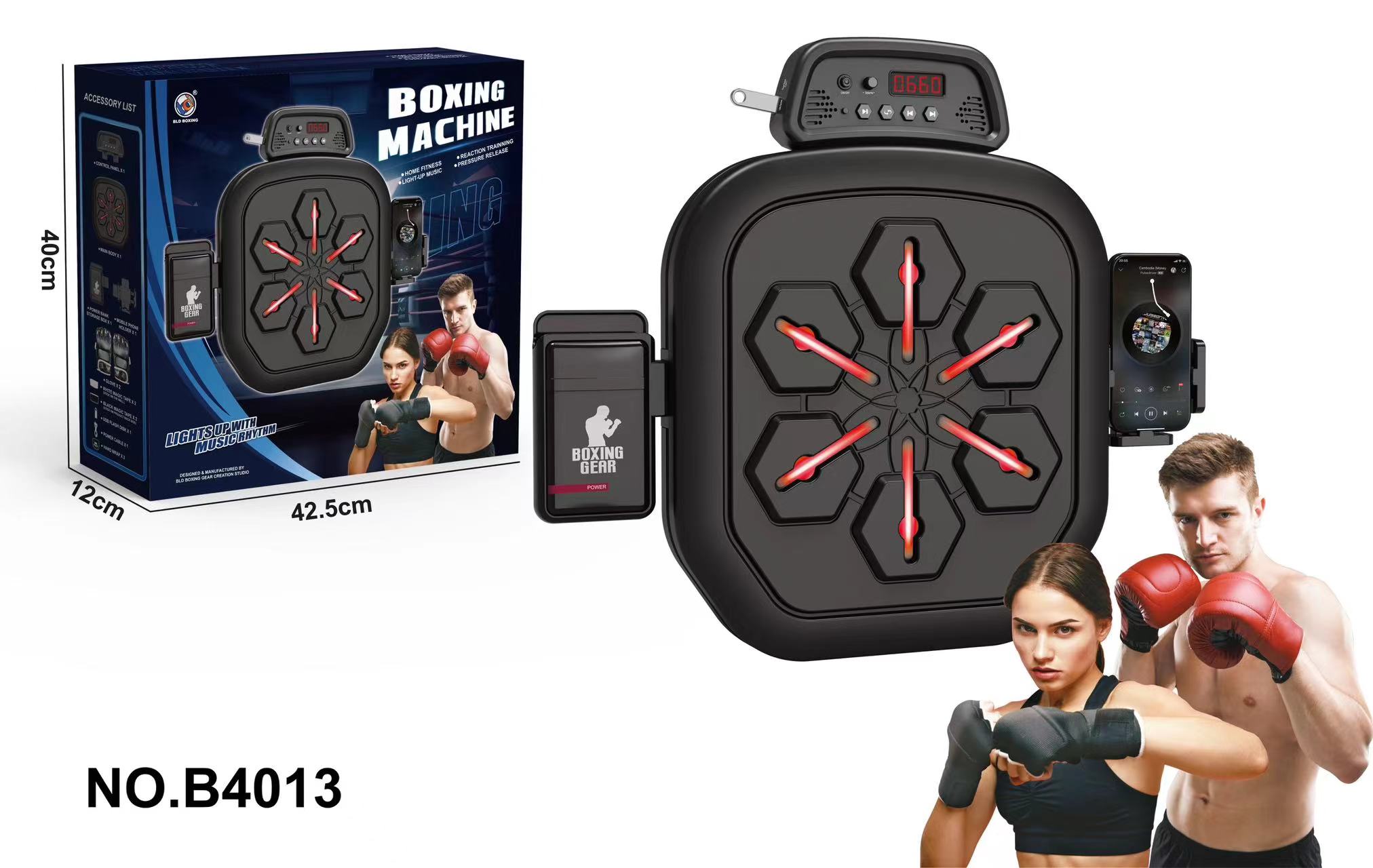 WHITE MAGIC TAPEX2 (STICK ON THE WALL) 0560 ●BLACK MAGIC TAPEX2 (STICK ON PRODUCT BACK SIDE) BOXING GEAR ●USB FLASH DISK X1 ●POWER CABLEX1 CONTROL PANEL X1 ●POWER BANK MOBILE PHONE MAIN BODY X1 STORAGE BOX X1 HOLDER X1 ·GLOVEX2 HAND WRAP X 2 | ||||||||
