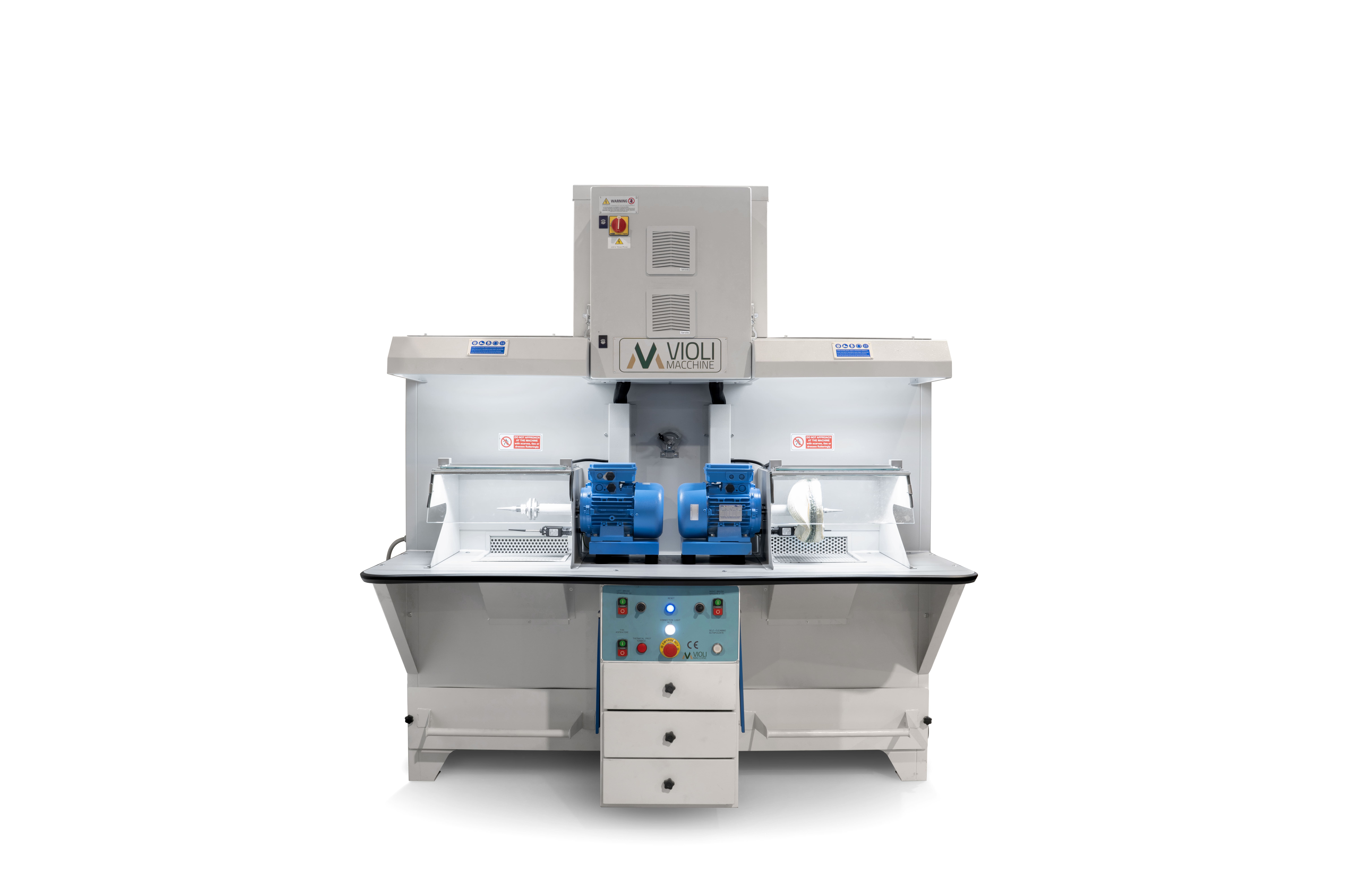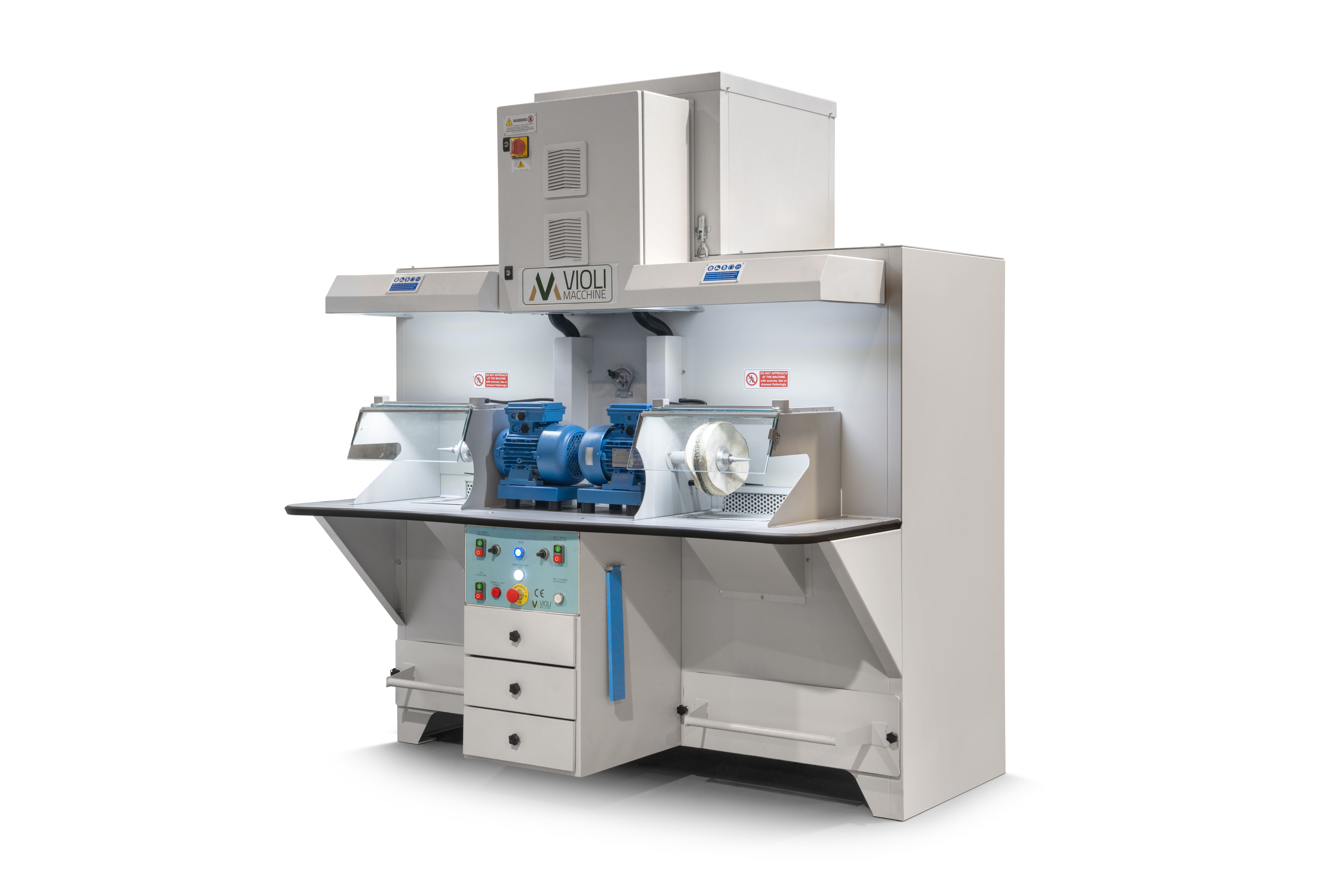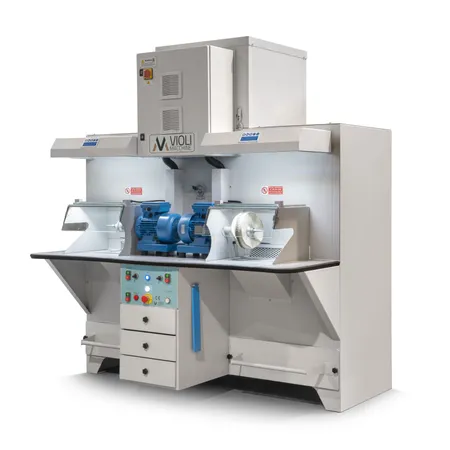 VM/ 2PM is a unit built with technologically advanced solutions for the manual cleaning or grinding of precious metal objects. Designed with two work places, they are equipped with a self-breaking motor (optional: inverter with speed adjuster) anchored to a base with anti-vibrating. The powerful aspiration conveys the waste in the two independent cartridge filter.