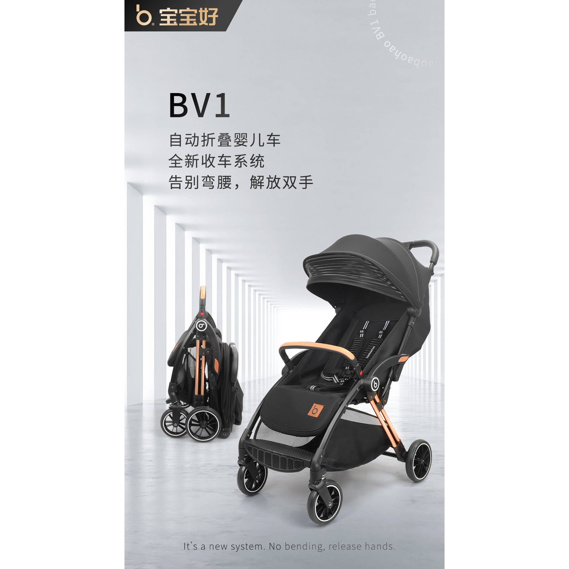 9.One Key Folding Stroller, Auto Folding By weight, After Folding in Stand.