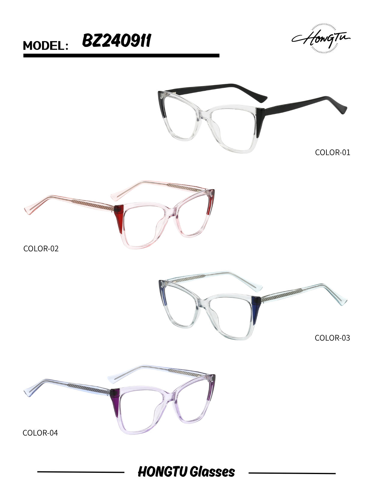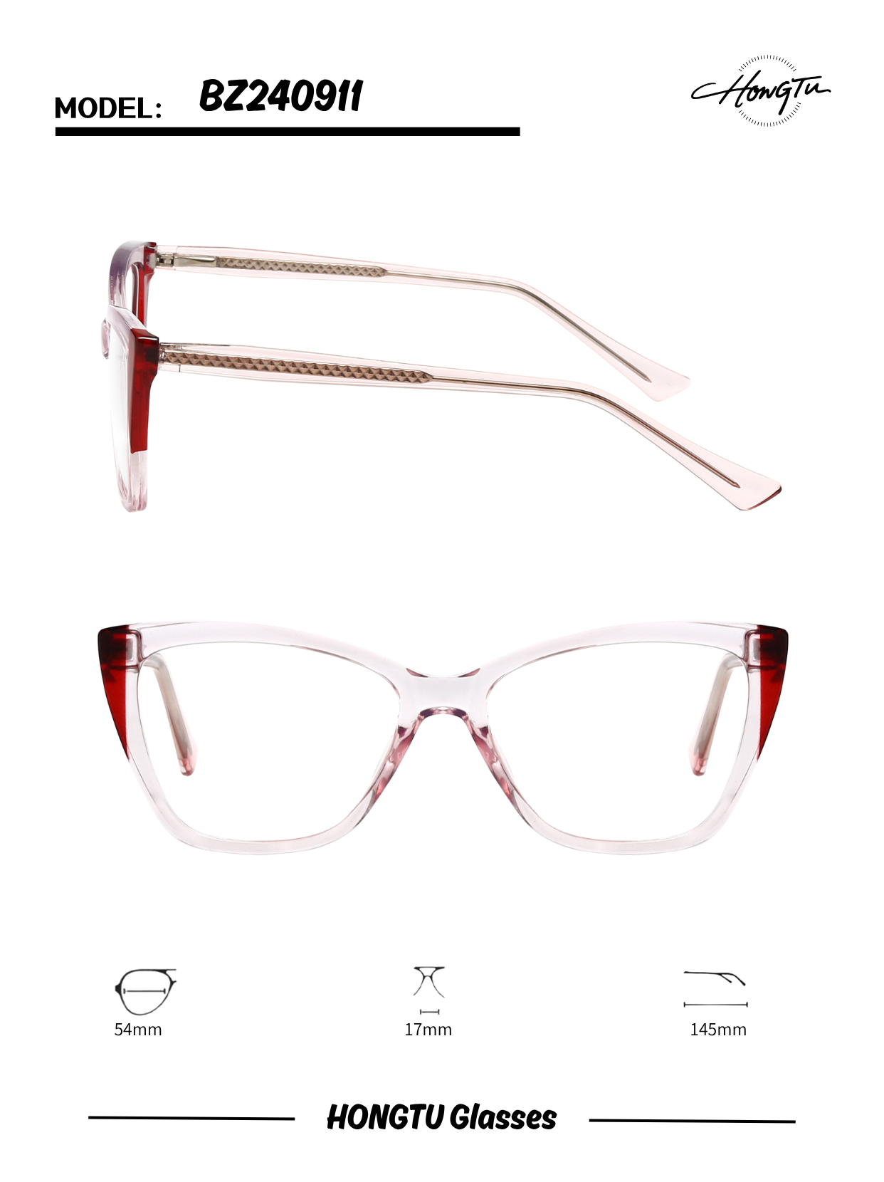 HONGTU Glasses Model BZ240911 features a chic cat - eye frame design, available in four distinct color variants (COLOR-01 to COLOR-04). It has a frame width of 54mm, a bridge width of 17mm, and a temple length of 145mm, ensuring a comfortable and stylish fit. Combining trendy aesthetics and meticulous craftsmanship, this model is an ideal choice for those seeking to elevate their look with a touch of elegance.