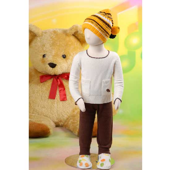 This babies' two-piece knitwear set includes a white sweater top and brown knitted pants. Knitted from 100% cotton, the sweater and pants are extremely soft and comfortable. The knitwear set is suitable for babies about 12 months old.