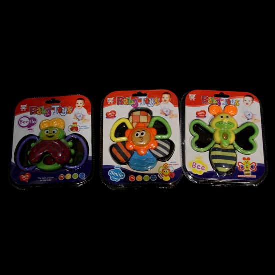 Presented here is a series of babies' rattles well made of ABS material. The rattle is well designed with vivid colors for stimulating babies' eye-sight and brain development. This series of babies' rattles is safe for babies to play with.
