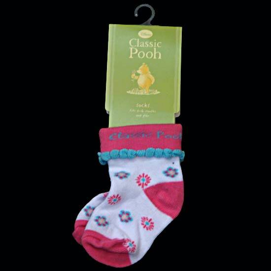 This pair of baby socks comes in pink and white. The adorable socks have floral patterns and cute flip-down tops. Keep your baby comfortable and warm in winter with this pair of cute socks.