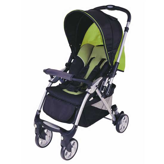 This babies' stroller boasts an aluminum-tube structure for durable use. The 3-positions back recline function, together with the cushioned seat, provides babies with great comfort. The 5-point harness guarantees babies' safety in the stroller.