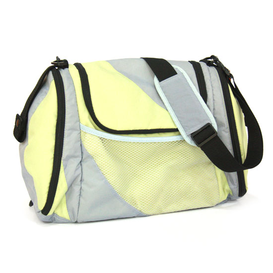 This diaper bag is designed with a large storage capacity for various baby utensils. It has an adjustable shoulder strap for users' convenience. An external mesh pocket serves to store small items.