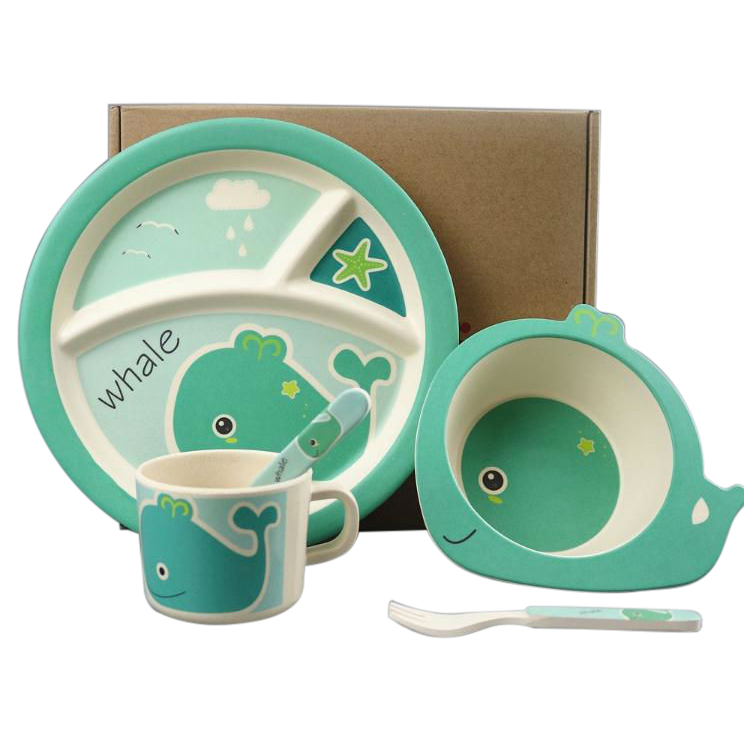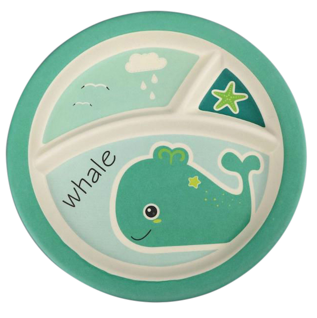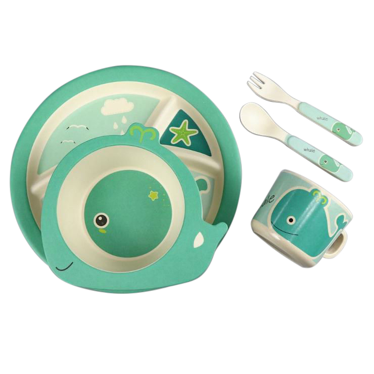 100% Natural Food Grade Whale Shaped Baby Bamboo Dinner Plate Sets