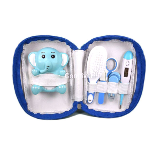 This bath thermometer kit for babies consists of multiple utensils such as a brush and nail clipper. It is stored inside a zipper bag for great convenience. The thermometer with an elephant design is incredibly charming.