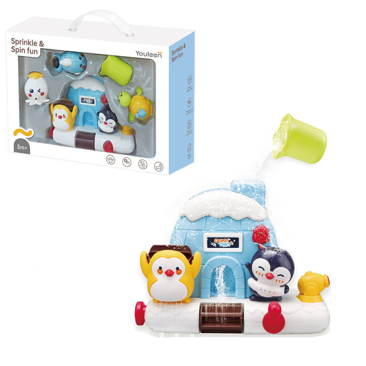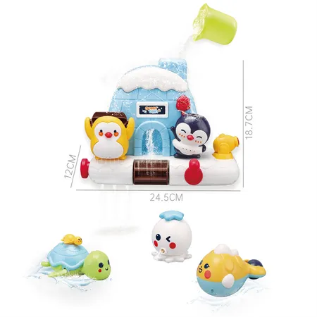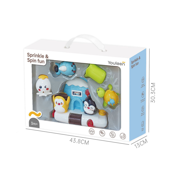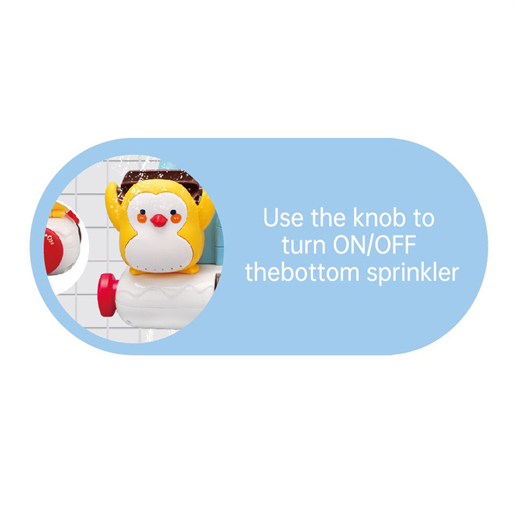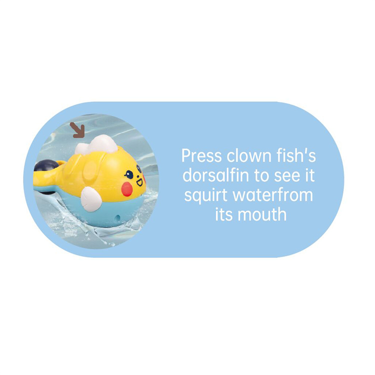 1: Press the scales above the clownfish, and water will be sprayed from the mouth. 2: Rotate the switch that controls the bottom shower head. When it is turned off, water will be stored inside the ice castle. 3: Turn off the knob and turn the hand to sp