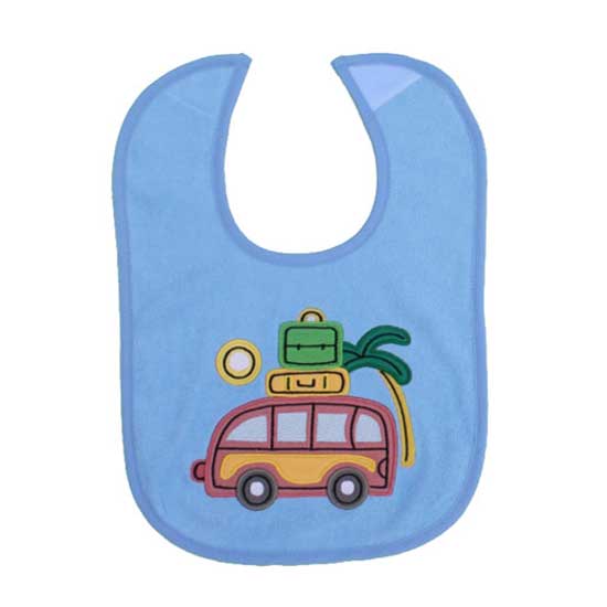 This is a baby bib in blue with adorable car patterns in assorted colors. It is mainly made of cotton material for enhanced comfort. Protect your babies' clothes from staining with this disposable bib.