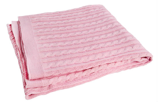 Nice and warm blanket with a trendy pattern in knitted cable look.