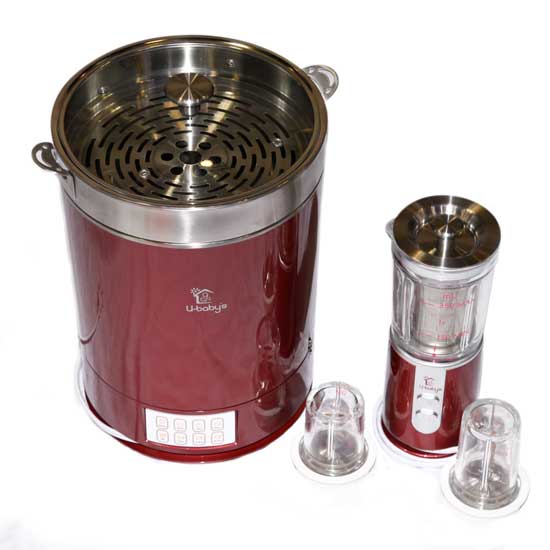 This mini baby kitchen helper with a burgundy red exterior includes a baby bottle boiling sterilizer and food preparation appliances. It boasts 12 functions allowing great flexibility. There are 3 colors available for customers to choose from.