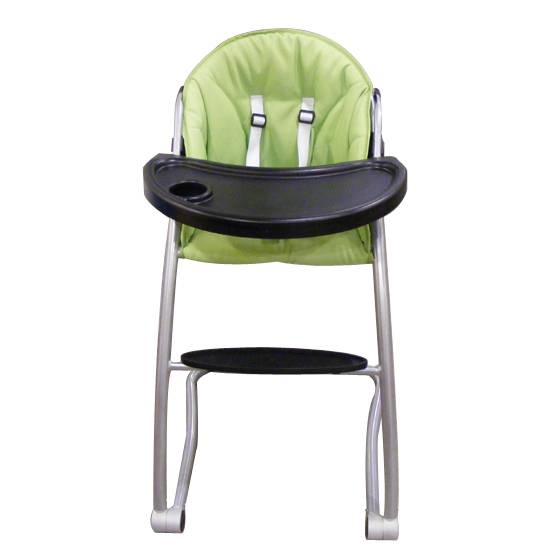 The baby chair is made of steel and plastic. It has a table with a hole for holding a cup or glass of drink. The chair is foldable for space saving when not being used. A small board is provided for the baby to place their feet on it comfortably.