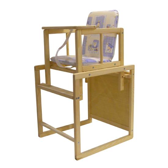This easy-to-mount highchair is made of solid pinewood with an integrated play/food tray. It is designed with a high, round backrest and an extra large play tray. The highchair is also usable as a separate chair and a separate table.