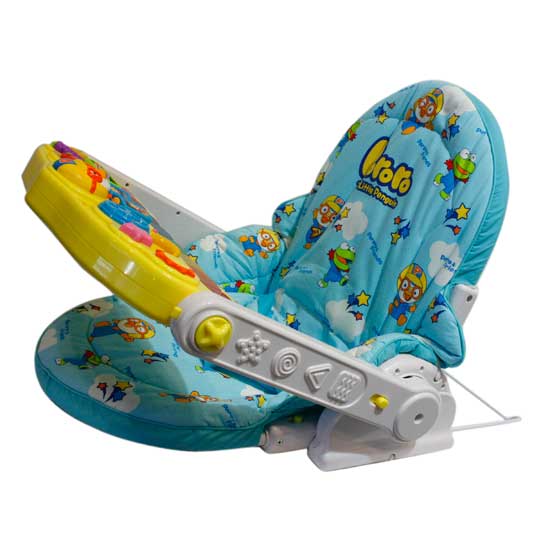 Pororo is a popular animation character in Korea. He is a very curious impish little penguin. He lives together with his friends including the good-natured polar bear Poby, smug nosy red fox Eddy, shy and timid little beaver Loopy, mischievous baby dinosaur Crong, cheerful penguin girl Petty and happy humming bird, Harry. Displayed is a padded baby chair featuring Pororo characters to catch kids’ attention.