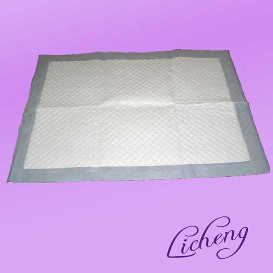 Shown here is a baby diaper designed in a large sheet form. The diaper sheet allows flexible use for placing on babies’ beds, cots, strollers, etc. The excellent absorbing power makes it easy to clean up.