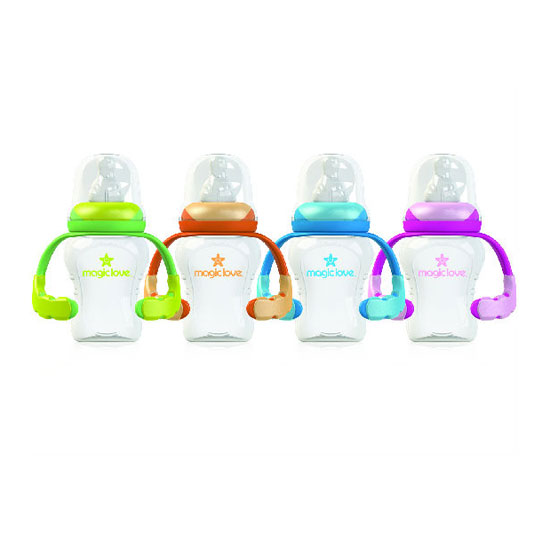 This feeding bottle comes with two curved handles, providing a comfortable and secure hand-grip for babies. The professional nipple can effectively regulate the liquid flow. It also features a tight-fitting lid to prevent spills.
