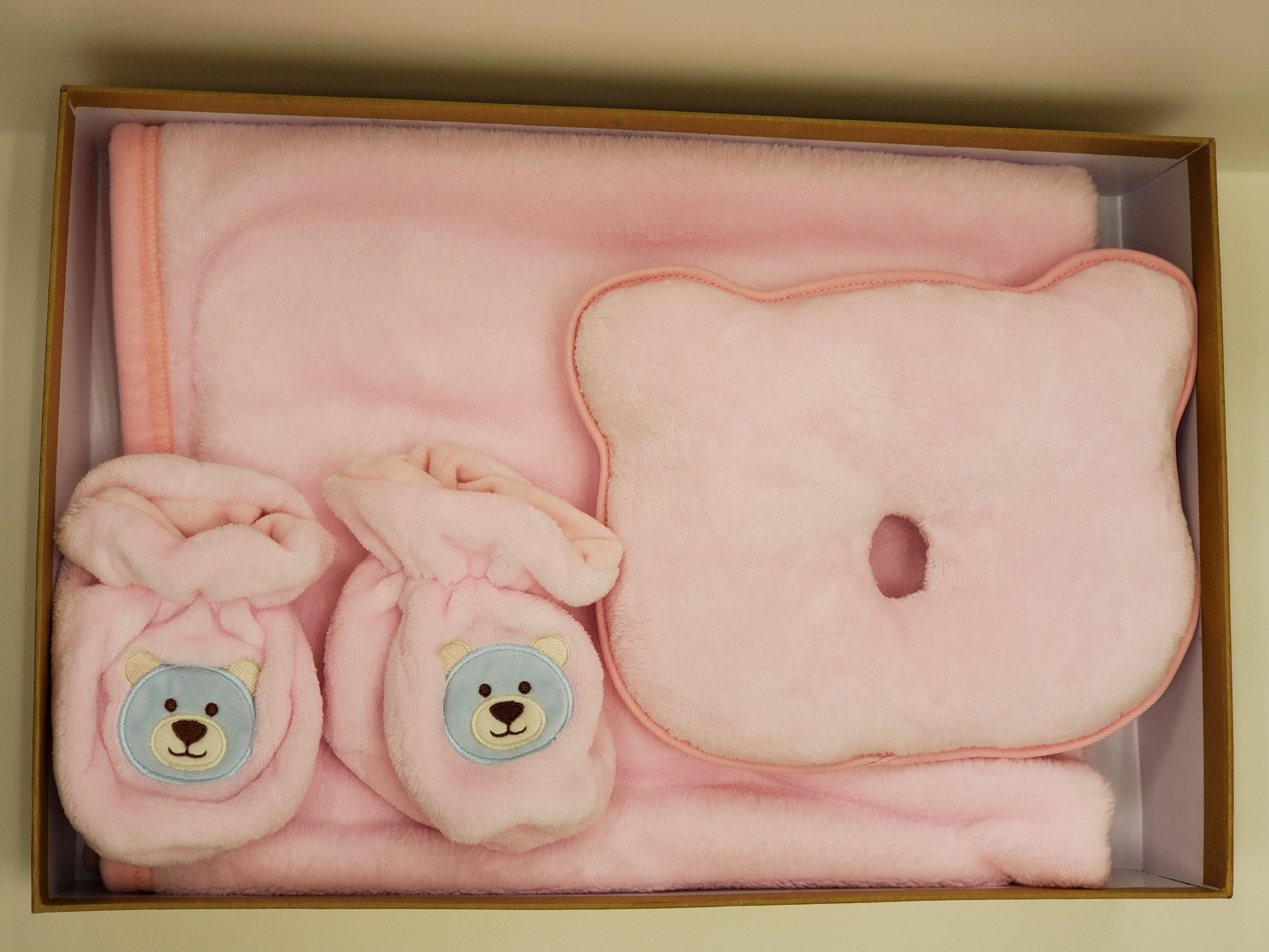 Baby Gift Set in Pink - Baby Boy Hamper with Gifts Including Baby Towel, Socks, Baby Pillow and Teddy Bear
