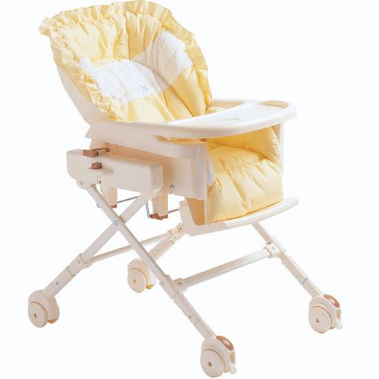 The baby high chair features a reclining seat with a small table in the front. It allows you to feed your baby with ease and let it sleep whenever it wants. This baby high chair is ideal for babies aged 6 months and up.