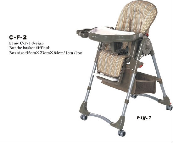 This high chair is loaded with handy features, including a four-wheeled construction for enhanced portability. The seat is comfortably cushioned and equipped with a built in footrest. Completing the thoughtful design is the discreet mesh basket and feeding tray, raised at the edges to prevent spilling.