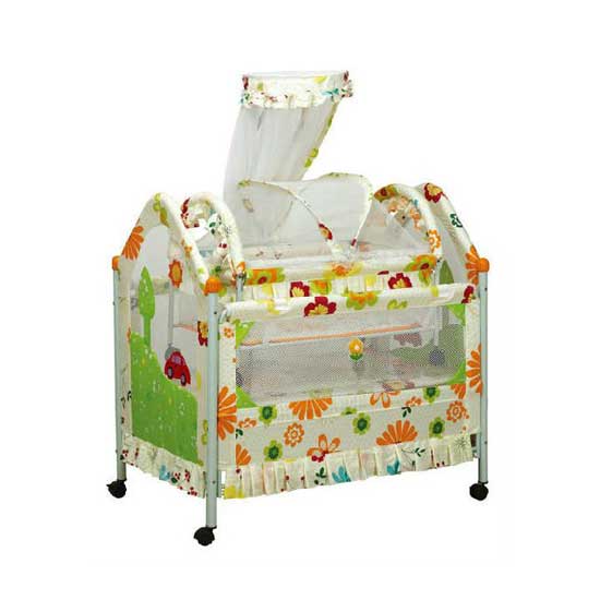 This baby bed is made with a metal frame for an extra-long service life. It provides an ideal play and sleep zone for your baby. The colorful prints on the fabric mesh add a touch of style to this baby bed.