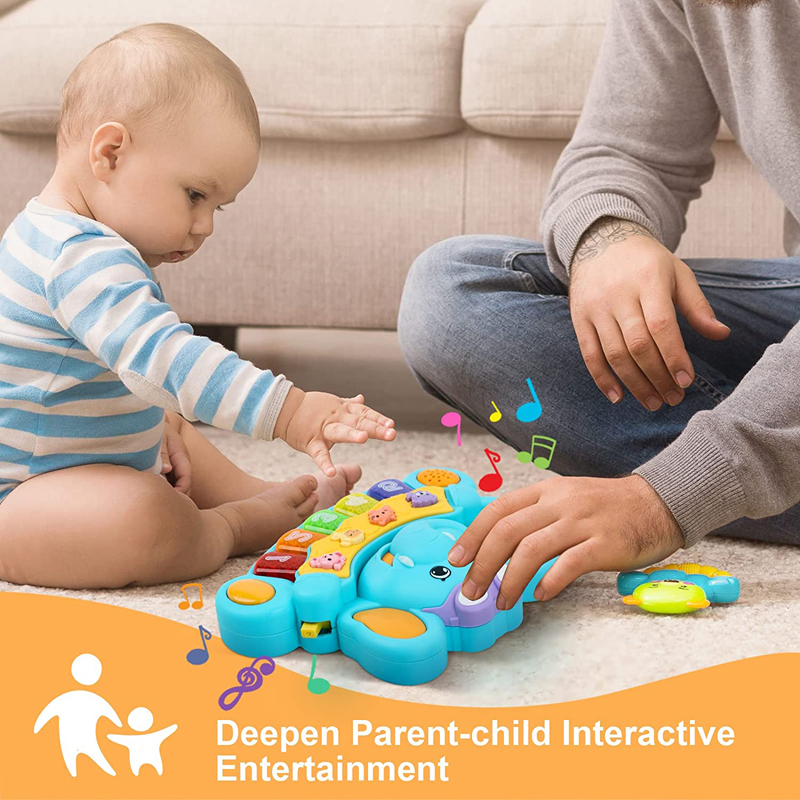 Baby Piano Toys Musical Light Up Toys Elephant Early Educational Piano Keyboard Toys Infant Gift Learning Game Musical Toys for Kids