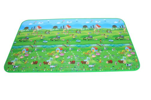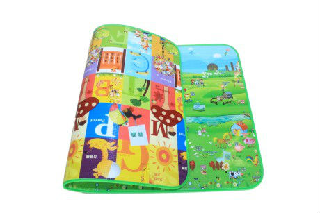 This baby play mat features a bright yellow color with assorted patterns. The top-quality mat offers a soft and cushioned surface. It makes a wonderful addition to your living space.