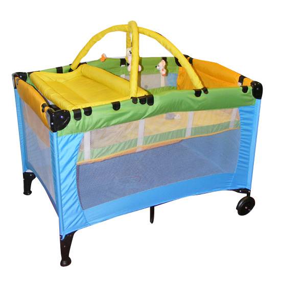 The baby playpen is designed with 2 polyester layers with a cross toy frame. Moreover, there is a removable and foldable diaper table. Furthermore, wheels are installed for easy transport.
