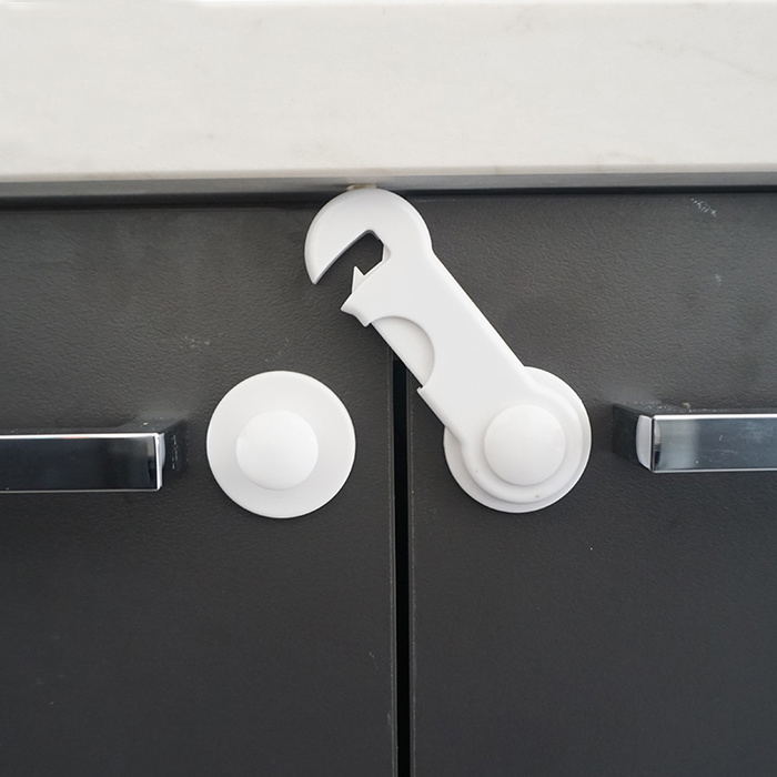 Usage: Baby safety plastic cabinet door latch helps to baby from opening and closing cabinet or cupboads, playing sharp objects by naughty babies.