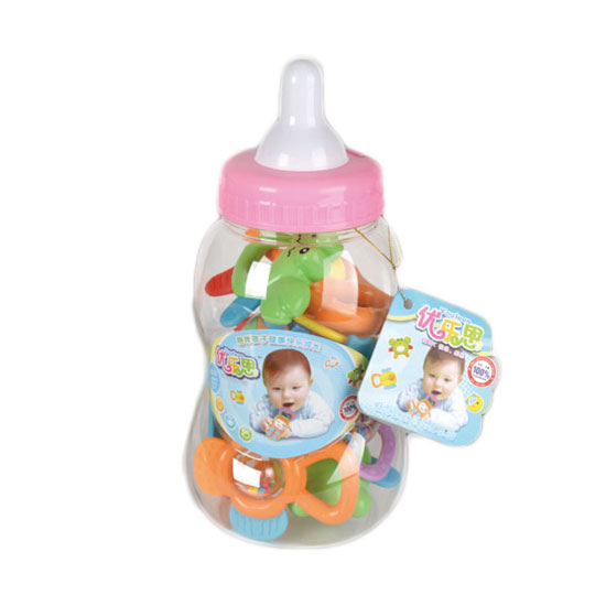 These rattles are uniquely packaged in a baby bottle-like container. Each rattle is finely made with food-grade materials to promise maximum safety. The bright colors and lovely designs can successfully draw babies' attention.