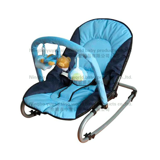 This finely manufactured chair is comfortable for kids to sit on. The exquisite chair features a 2-tone blue body. The chair is fitted with a round bar with toys hung on it.