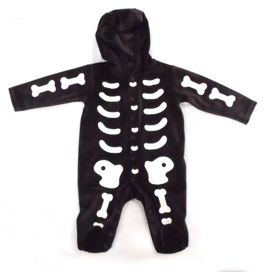 The baby rompers feature a hood and a front button closure. It showcases contrasting skeleton prints for a unique touch. Dress your baby in these rompers on Halloween and carnival parties.