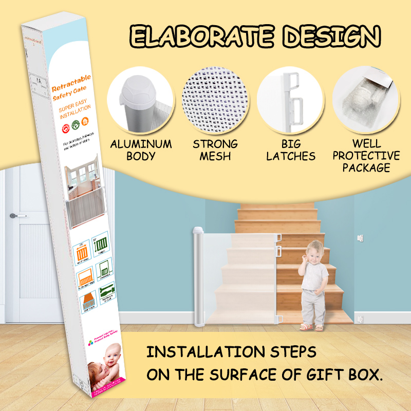 Stop your little explorer from crawling into the kitchen or down the stairs by installing this baby safety gate. This well-designed baby safety gate is retractable, so you don’t need to uninstall the gate every time you want to let your toddler out. It is also highly versatile as you can detach and apply it to various rooms, like installing it in the bedroom at night or in the sitting room during the day. If you need a gate that you can move around easily and can be used in multiple doorways and the stairway, this top-quality and user-friendly gate is the one to get.